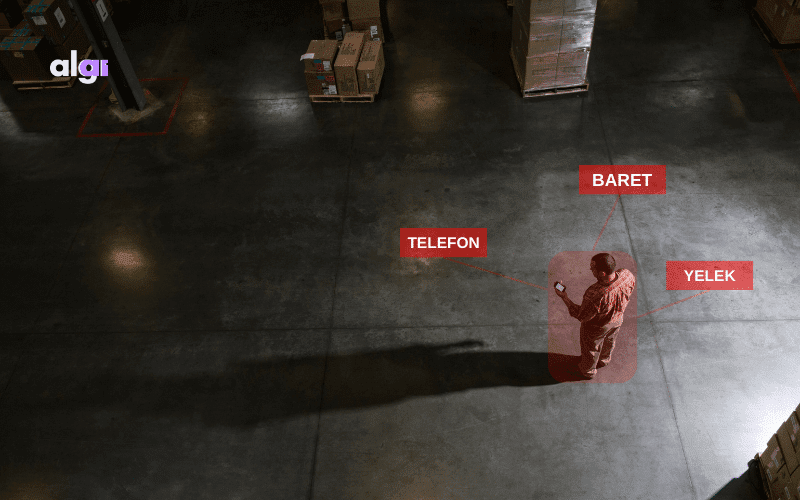 Algi Ai tarafından kullanılan sistemler; kask, yelek, eldiven, koruyucu ayakkabı gibi iş güvenliği ekipmanlarını tanımlı sınıflarla izler ve uyumsuzlukları anında tespit eder.